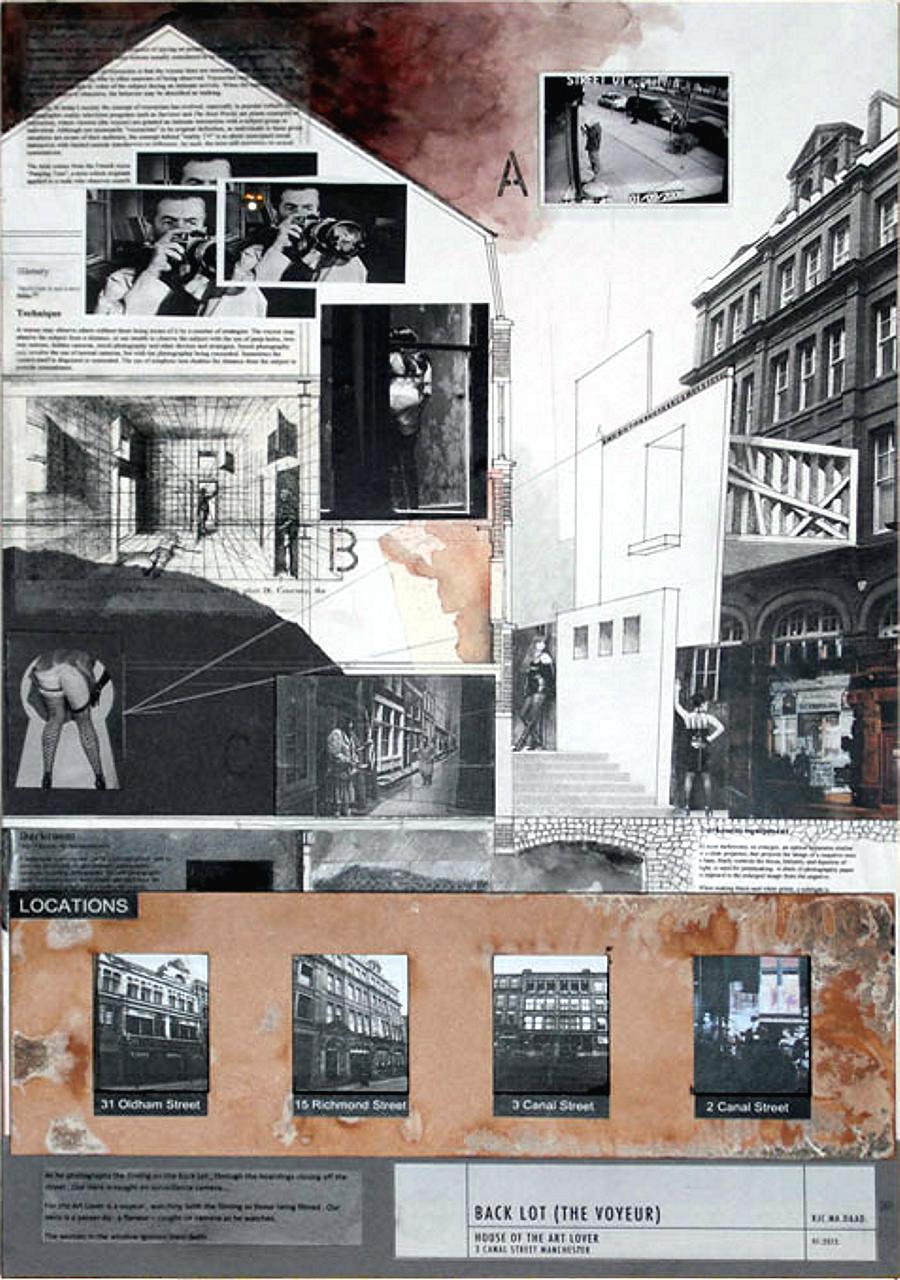 The Art Lover watches films, watches the making of a film on the Back Lot at the rear of his studio by the Dominatrix, who has the house next door. Hoardings conceal the site, but watchers still find viewpoints.
