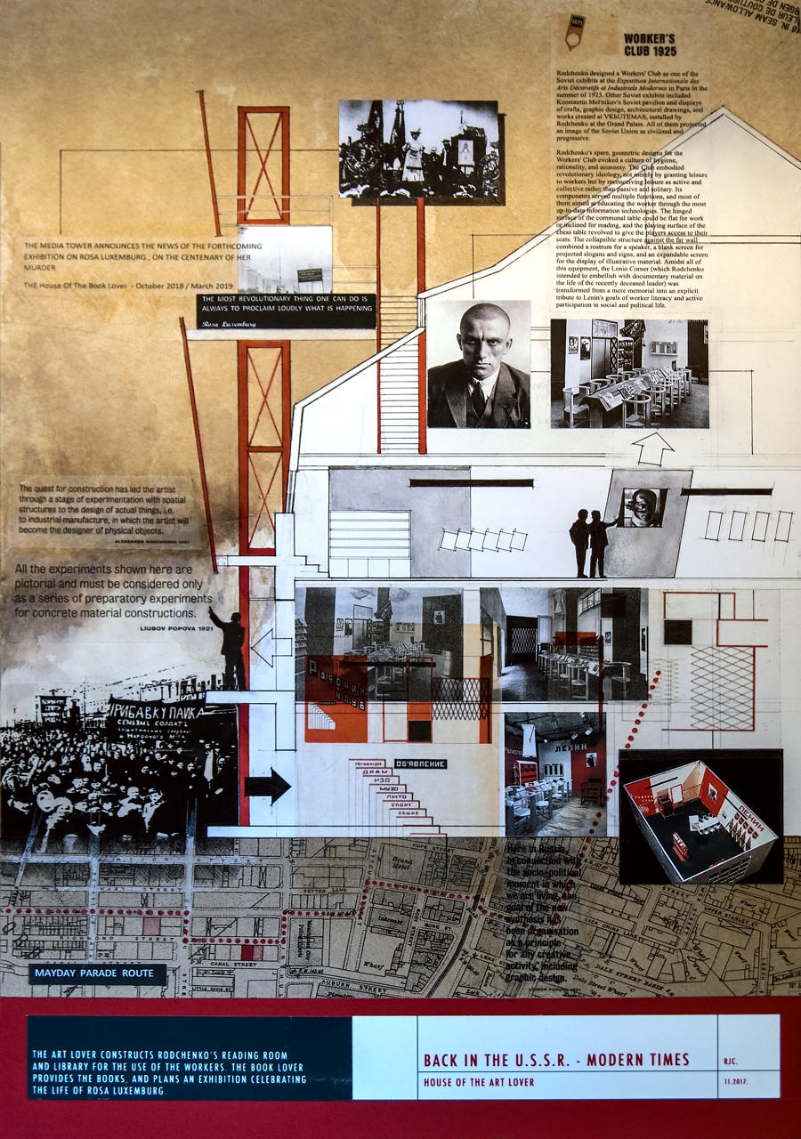 The Art Lover reconstructs Rodchenko's Reading Room and library for the use of the workers. The Book Lover provides the books and newspapers, and plans an exhibition celebrating the life of Rosa Luxemburg.